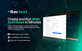 RacTest, QA mühendisleri ve geliştiriciler için web testlerini otomatikleştiren bir Chrome eklentisidir. Kullanıcı etkileşimlerini kaydedip yeniden oynatabilme yeteneği sayesinde, test senaryolarını hızlı bir şekilde oluşturmayı sağlar. Bu araç, her testi sıfırdan inşa etmeden beklenen davranışı doğrulamak için tasarlanmıştır. RacTest, manuel regresyon çabasını azaltarak, sürüm döngülerini hızlandırır ve test tutarlılığını artırır.